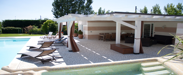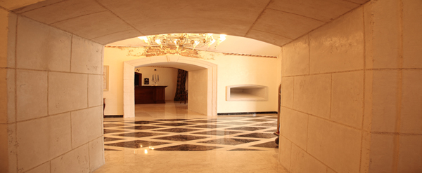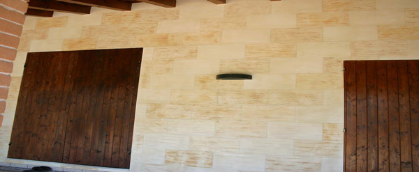 Säulen tatsächlich aus massiven Travertino Stein sind der Rest ist ein Putz aus